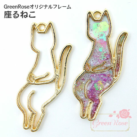 レジン枠 座るねこ フレーム 10個 GreenRoseオリジナルデザイン ネコ j6-4674