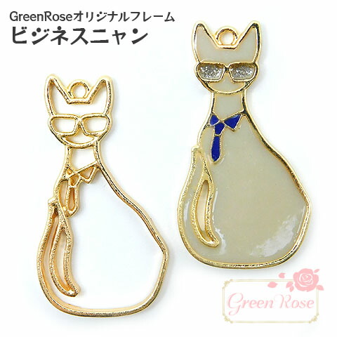レジン枠 ビジネスニャン フレーム 10個 GreenRoseオリジナルデザイン ネコ j6-4675