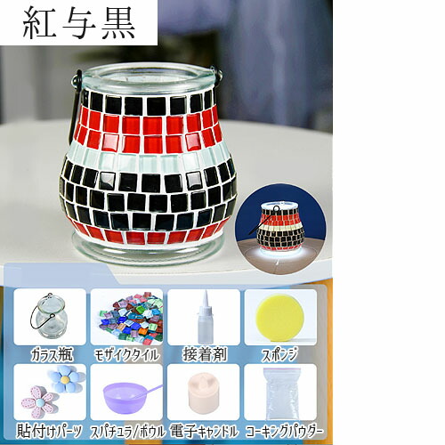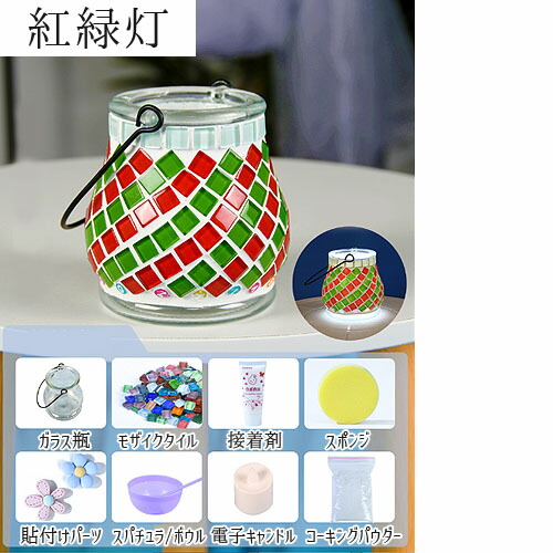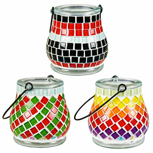 モザイクガラス ランタン型 キャンドルホルダー 全3色 1セット 工作 手作り kit33 / 宅配便