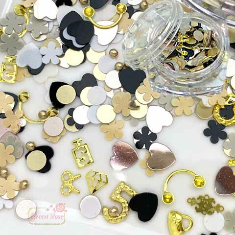 大人カラー ブランド風 モノトーン 封入 メタルパーツ ホログラム ミックス レジンパーツ 1個 rp-273