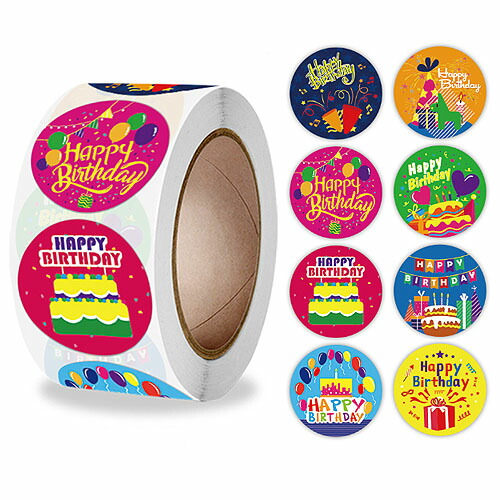 ギフトステッカー シール HAPPY BIRTHDAY カラフル 8種 1巻約500枚 seal61 / 宅配便