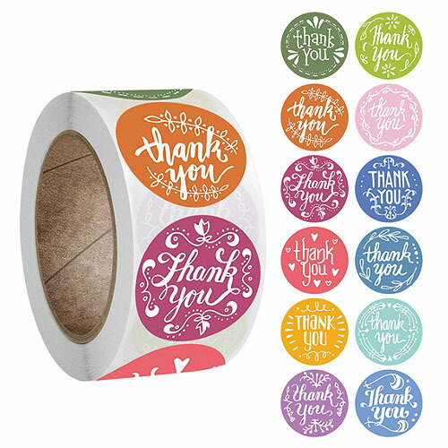ギフトステッカー シール THANK YOU カラフル 12種 1巻約500枚 seal66 / 宅配便