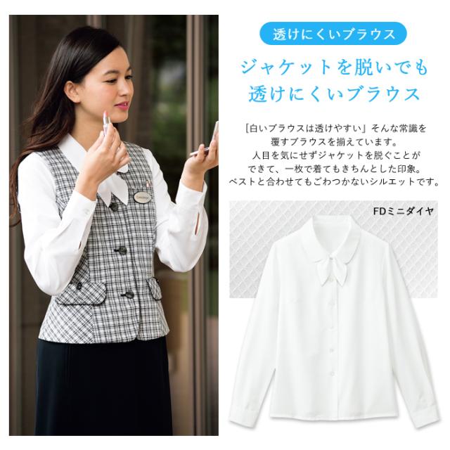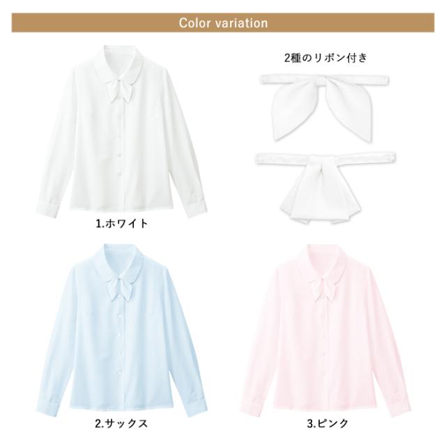 事務服 ブラウス レディース 長袖 制服 nuovo 秋冬 春夏 FOLK リボン付き【送料無料】白 ホワイト サックス ピンク 医療事務 受付 接客 冠婚葬祭 セレモニー フォーマル オフィス スーツ シャツ 透け防止 おうちで洗える agesugi_sfa