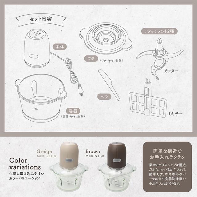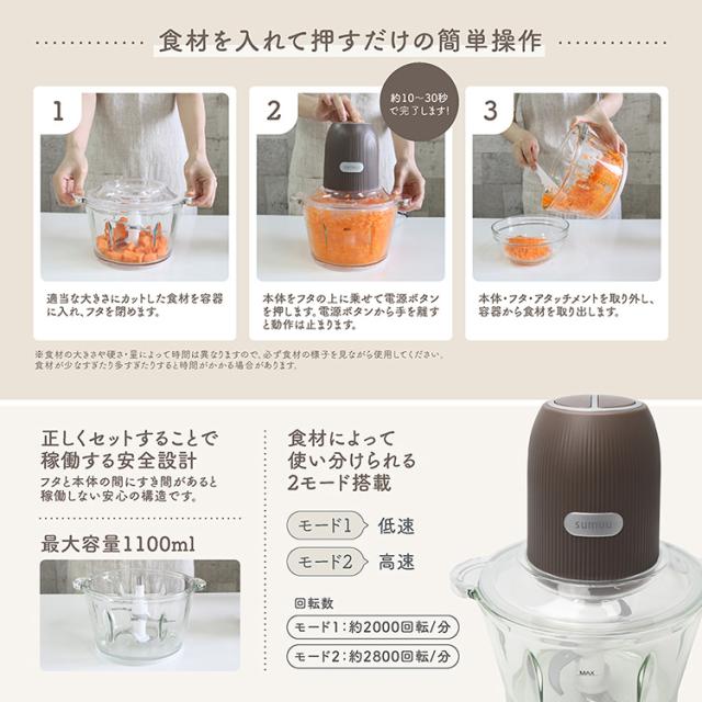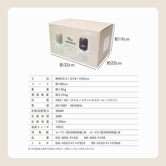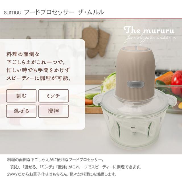 sumuu スムウ フードプロセッサー ザ・ムルル MEK-91 GG 調理家電 調理器具 便利 時短 カッター ミキサー 刻む ミンチ 混ぜる 攪拌 氷 低速 高速 2モード シンプル スタイリッシュ キッチン家電 キッチン用品 おしゃれ