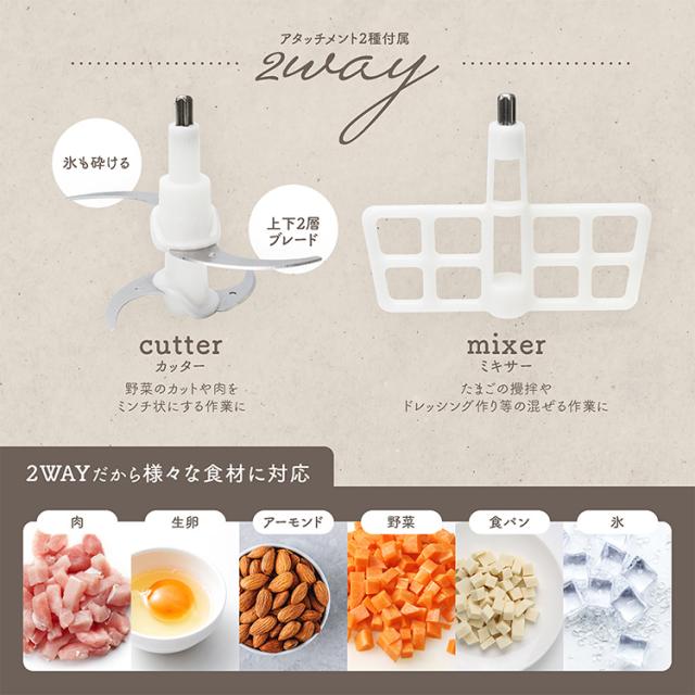 「刻む」「ミンチ」「混ぜる」「攪拌」ができるフードプロセッサーです。