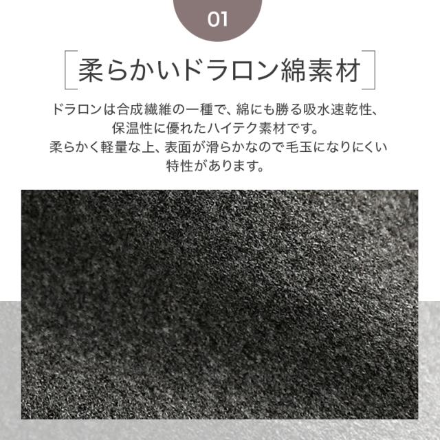 ・ドラロンは、合成繊維の一種類で、綿にも勝る吸水速乾性、保温性に優れたハイテク素材です。