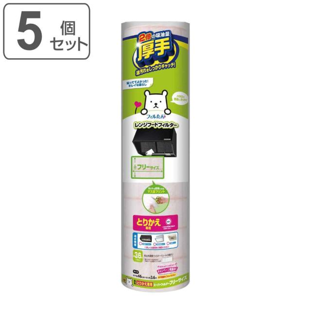 レンジフードフィルター とりかえ専用 フリーサイズ 46cm×3.6m 5個セット ( 日本製 レンジフィルター レンジフードカバー 取り替え専用 レンジフード用 フィルター カバー 換気扇 換気扇フィルター レンジフード用カバー )