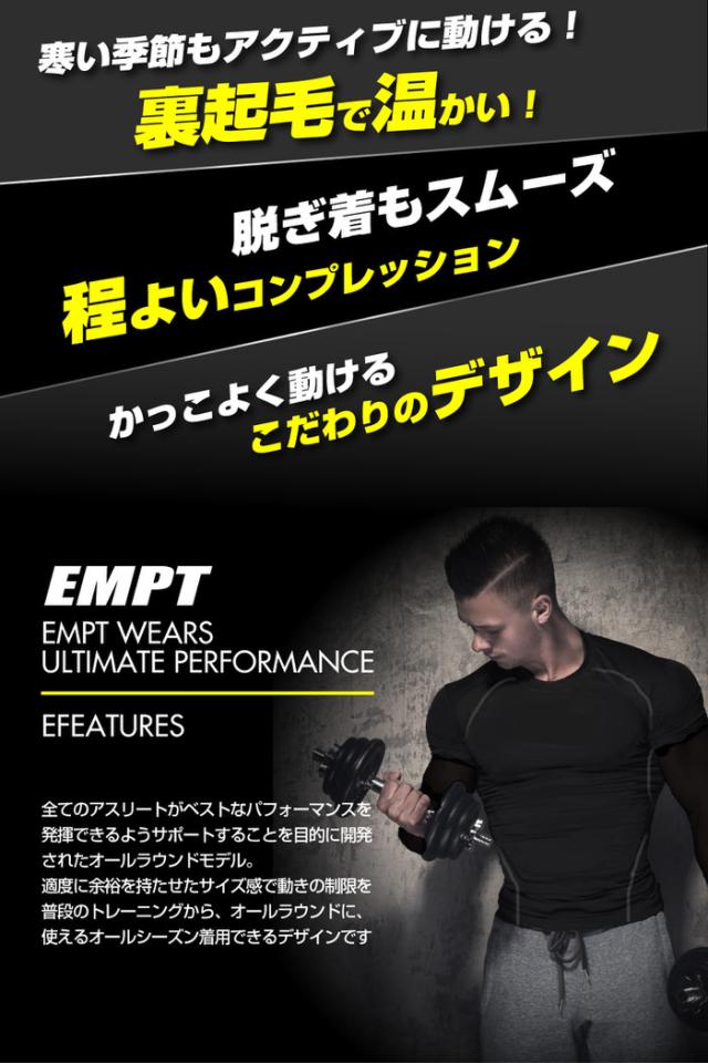 EMPT ヒートギア ロング Tシャツ コンプレッションウェア | ヒート メンズ トレーニングウェア スポーツウェア 加圧 裏起毛 あたたかい 暖かい シャツ アンダーシャツ アンダーウェア 長袖 保温 防寒 ストレッチ