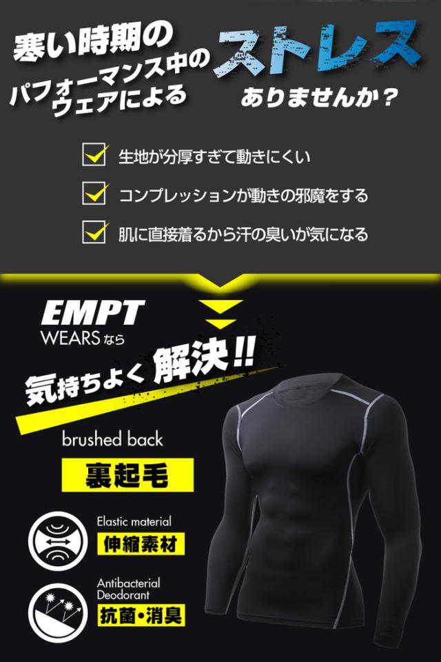 EMPT ヒートギア ロング Tシャツ コンプレッションウェア | ヒート メンズ トレーニングウェア スポーツウェア 加圧 裏起毛 あたたかい 暖かい 防寒 ストレッチ
