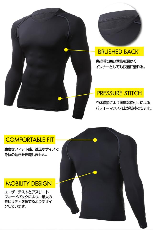 ■ 商品説明 : 様々な スポーツシーン で使える スポーツ インナー です。適度な 着圧 加圧 で 快適 な着心地、 アクティビティ 、 パフォーマンス 時の体の動きを サポート 。 吸汗速乾 の 高機能ウエア で 秋 冬 の寒い季節 にもアクティブに動ける 防寒 保温 性のある コスパの 高い モデル 。 裏起毛 で 暖かい アンダーウェア。シンプル かつ おしゃれ な かっこいい デザイン 。 プレゼント にも最適です。