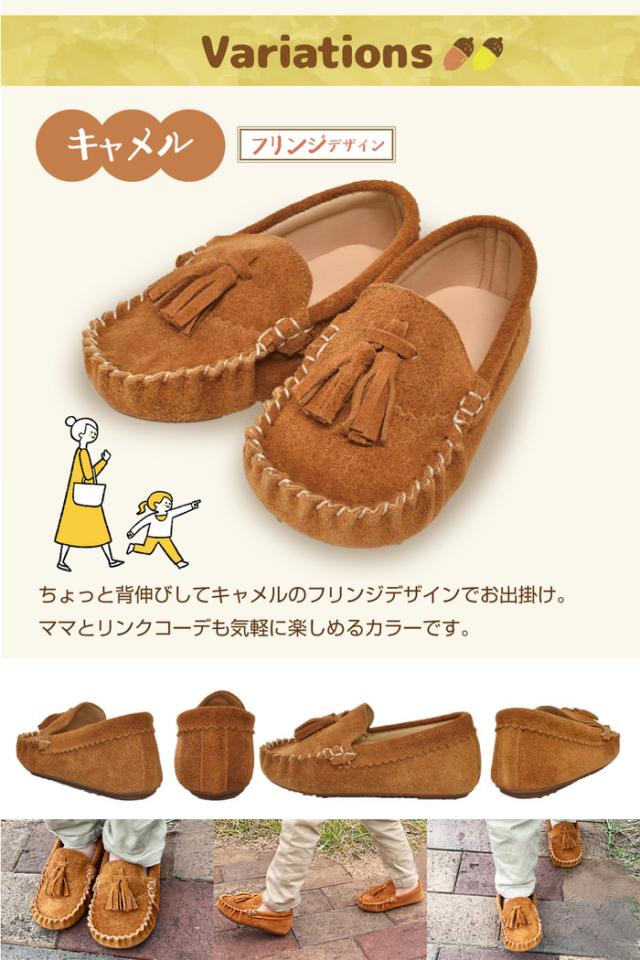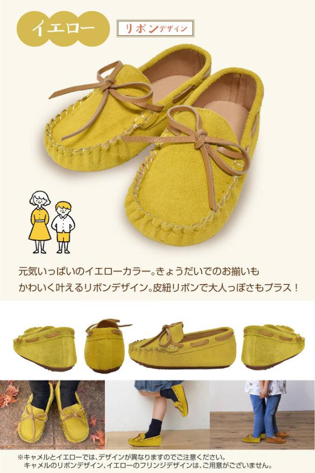 キッズ ローファー モカシン | 女の子 男の子 茶 キャメル モカシン オシャレ ぺたんこ 黄色 シューズ 靴 スウェード 子供 おしゃれ イエロー ブラウン