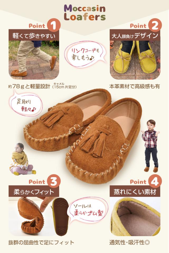 お出掛け が快適楽しくなる大人顔負けデザインの モカシンローファー