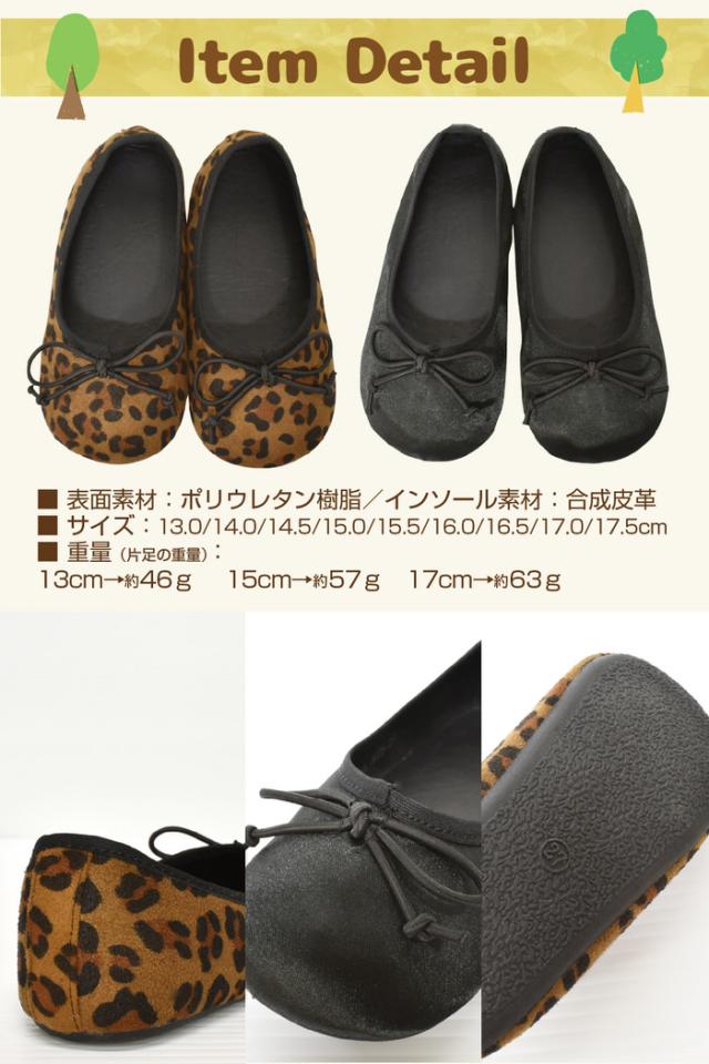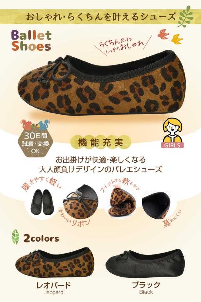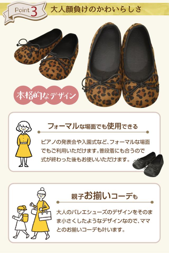 キッズ バレエシューズ | 女の子 子ども こども シューズ おしゃれ レオパード 卒園式 入学式 ブラック 黒