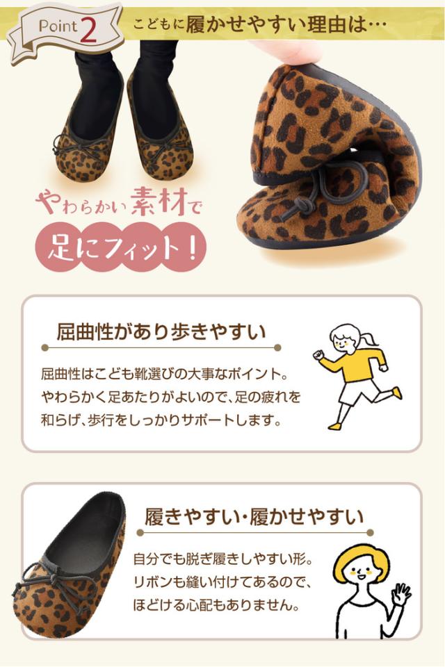 キッズ バレエシューズ | 女の子 子ども こども シューズ おしゃれ レオパード 卒園式 入学式 オシャレ フラット 小学生 かわいい ヒョウ柄 ブラック 黒