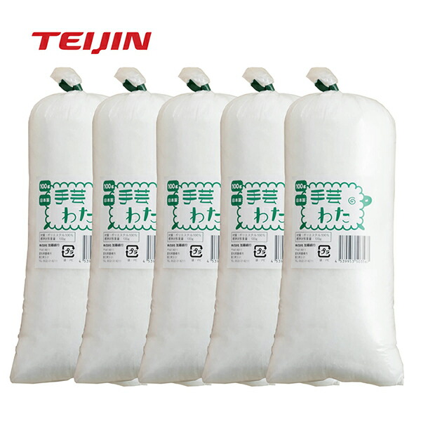 手芸わた 100g×5本セット 綿 テイジン クリスタ 詰めわた クッション用 ぬいぐるみ用 詰め綿 つめわた