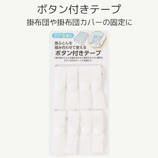 スナップボタン ボタン付きテープ 掛け布団カバー ズレ防止 紐取り換え つなぐ 連結 便利グッズ 手芸 ホック カバー交換ラクラク 8本セット