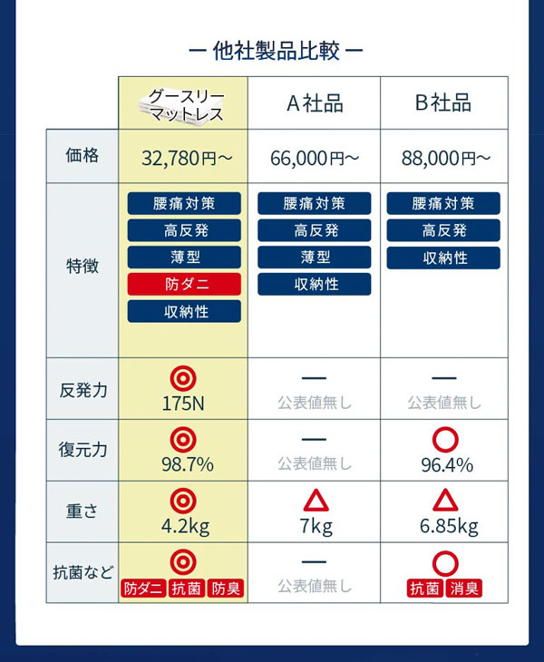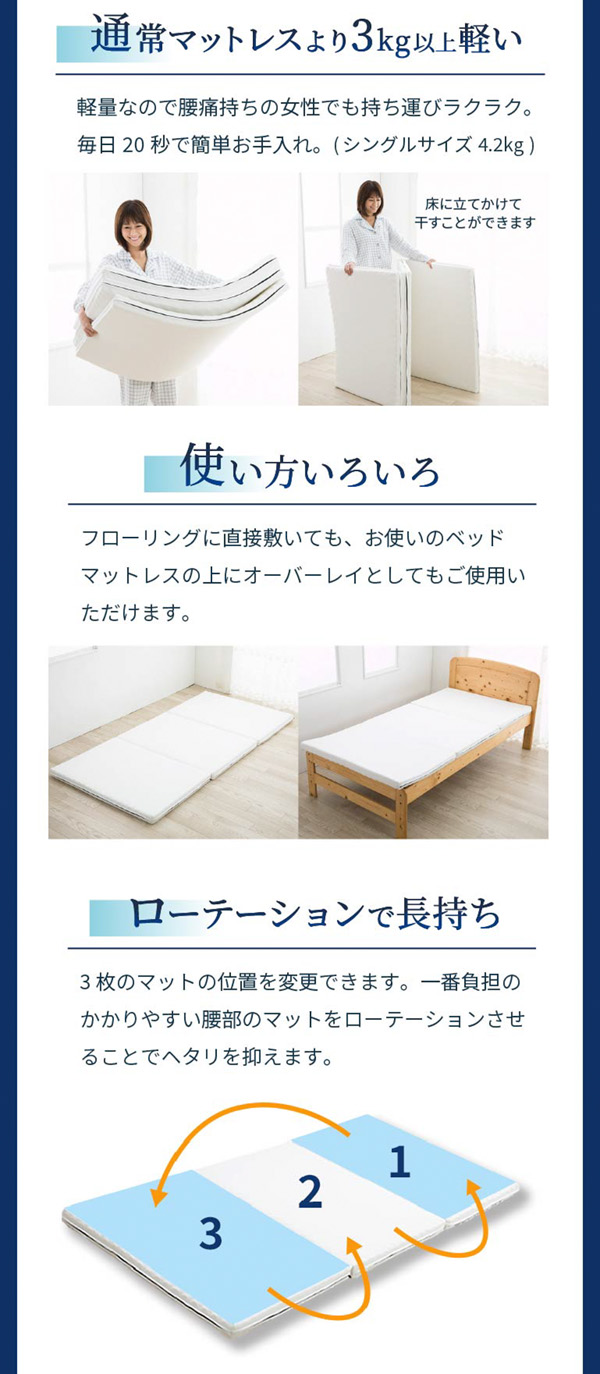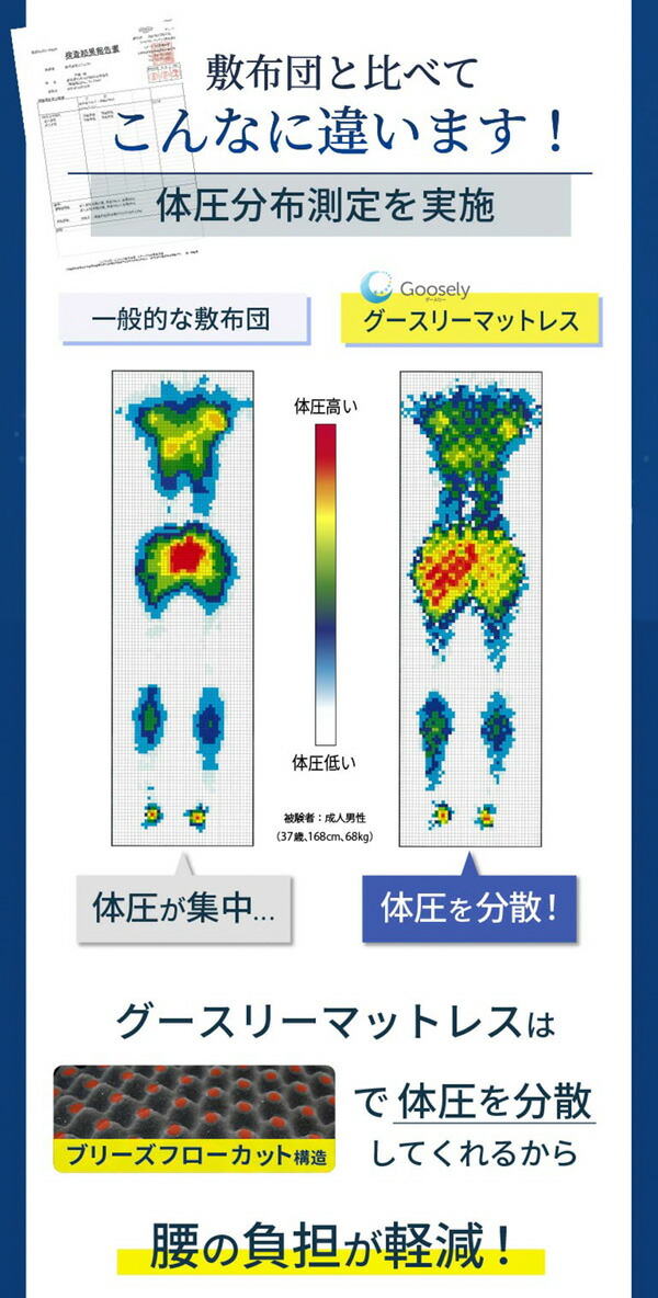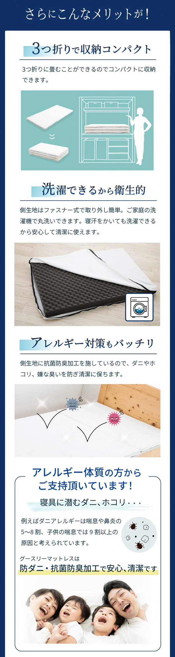 グースリー マットレス 腰痛対策 体圧分散 耐圧分散 寝姿勢 寝返り 軽量 高反発マットレス 三つ折り 3つ折り シングルサイズ 97×201×6cm
