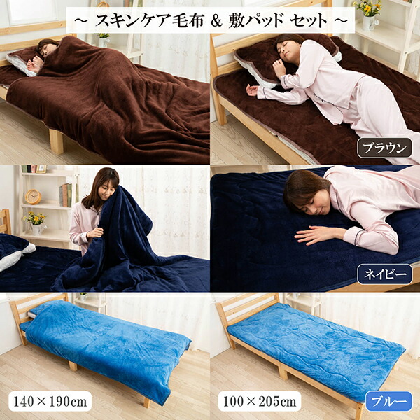 【サイズ】毛布・・・140 × 190 cm 敷パット・・・ 100 × 205cm