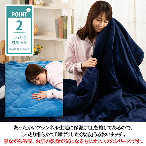 あったかいフランネル生地に保湿加工を施してあるので、