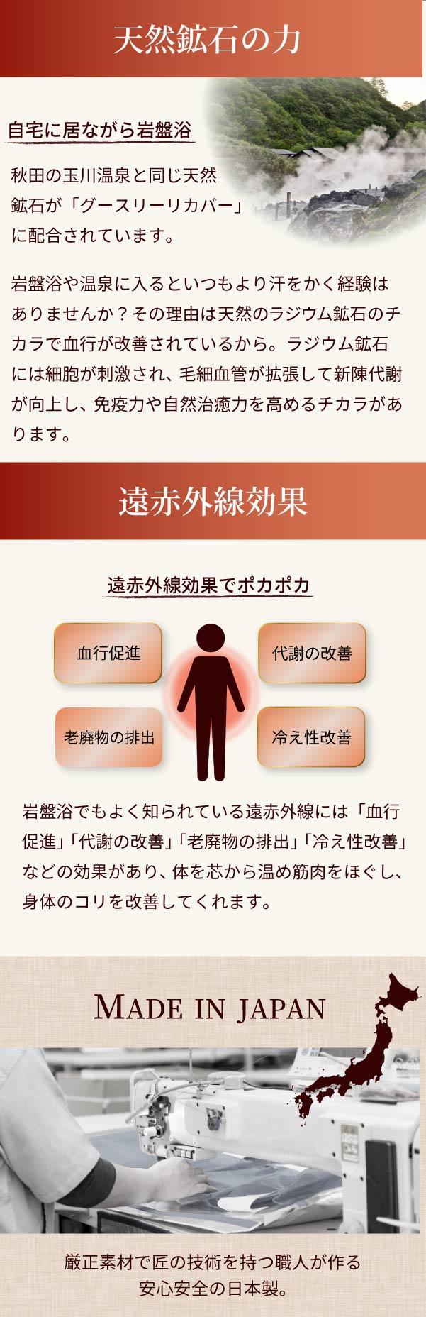 (2)血液サラサラ天然鉱石の力..岩盤浴や温泉に入ると天然のラジウム鉱石の力で血行が改善されます。