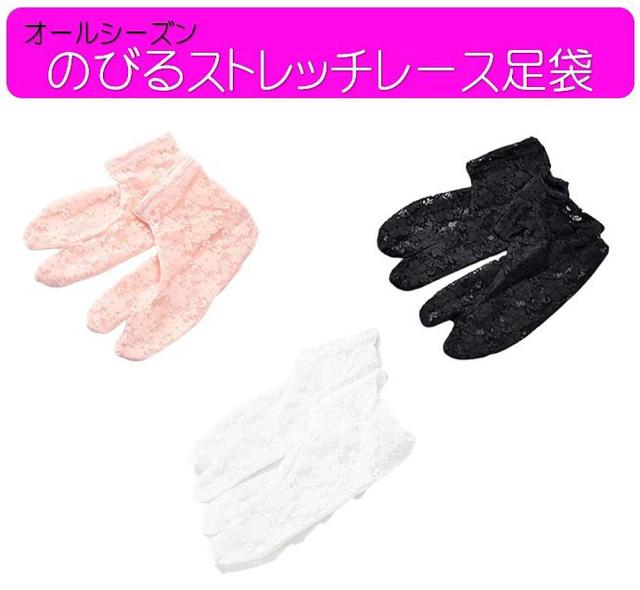 お洒落 レース足袋 ストレッチレース足袋 ストレッチ足袋 ソックス足袋 のびる足袋 オールシーズン コハゼ無し 白 黒 ホワイト ブラック ピンク