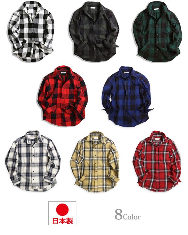 日本製 チェックシャツ メンズ 厚手 ネルシャツ 長袖シャツ ビエラシャツ オンブレチェック バッファローチェック ヘヴィウエイト アメカジ 秋冬 QUINTETTO クインテット