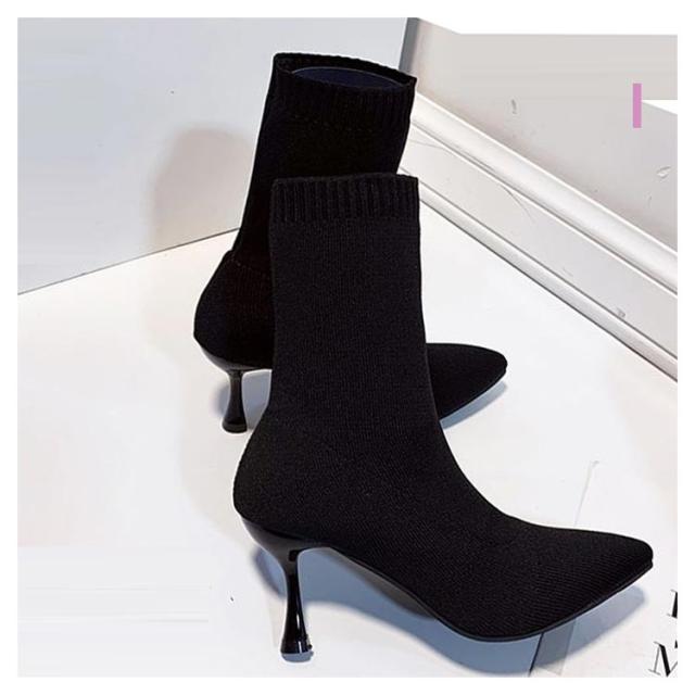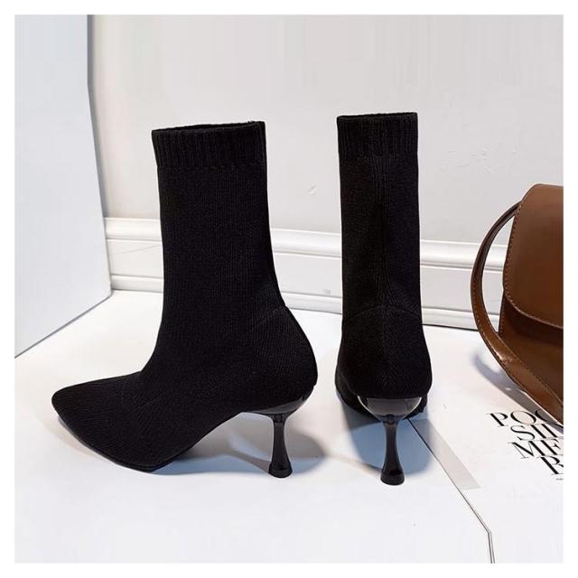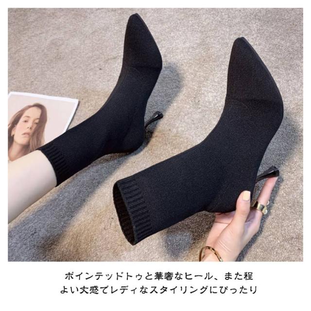 ソックスブーツ レディース 秋 冬 裏起毛 ポインテッドトゥ 選べるヒール 5cm 7 cm 9 cm ピンヒール ストレッチブーツ ショートブーツ ミドル丈 靴 ソックスシューズ 美脚 無地 歩きやすい 疲れにくい ハイヒール 暖かい 防寒 保温 黒 ブラック