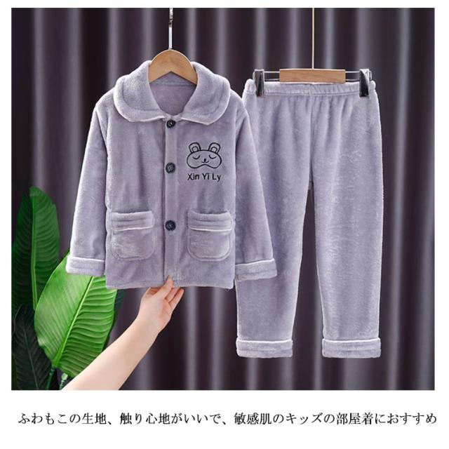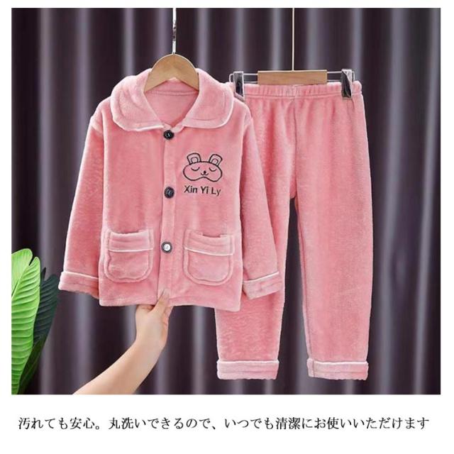 上下セット パジャマ キッズ 前開 女の子 男の子 長袖 冬 子供 トップス ボトムス パンツ セットアップ もこもこ 寝巻き 伸縮性 ストレッチ 厚手 無地 暖かい ルームウェア 秋冬 冬物 冬 部屋着 かわいい おしゃれ 寝巻き ナイトウェア 洗える 防寒着 プレゼント 送料無料