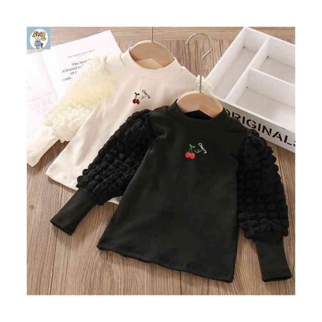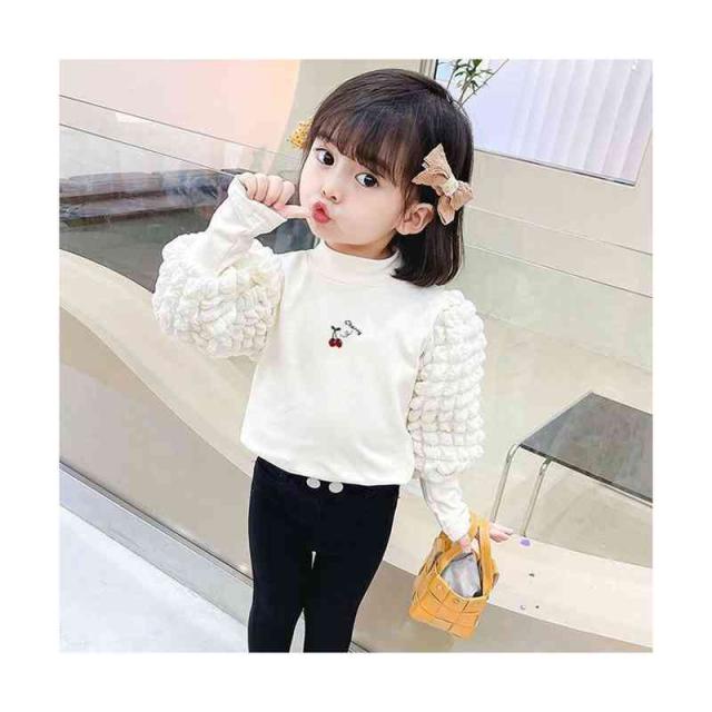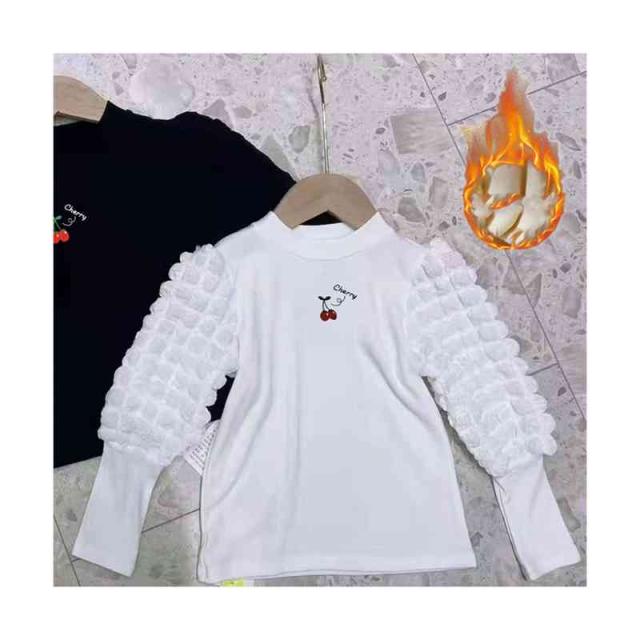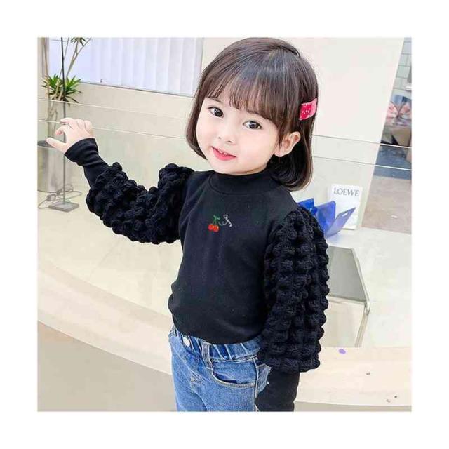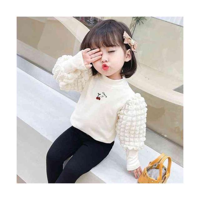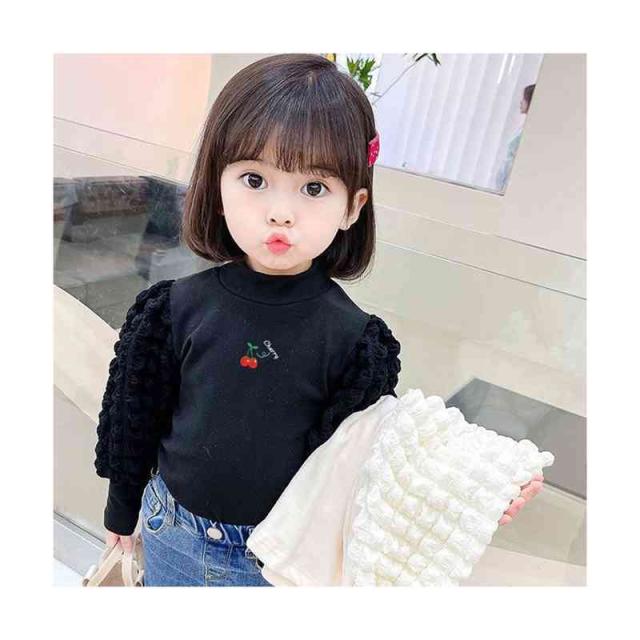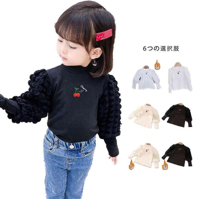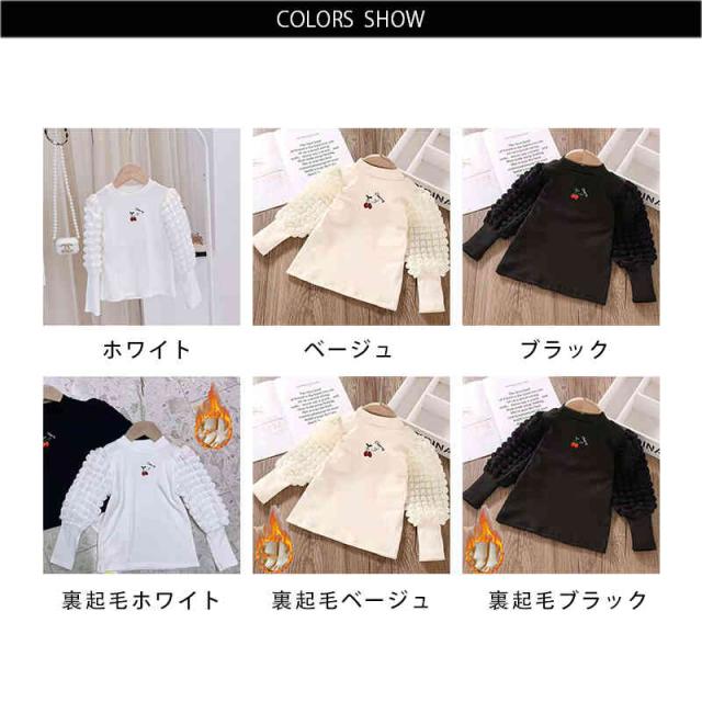 プリーツブラウス キッズ 女の子 桜桃柄 長袖 フリルブラウス おしゃれブラウス インナーブラウス トップス 春 秋冬 裏起毛ブラウス 無地 シンプル カジュアル おしゃれ 送料無料 子供服 ジュニア