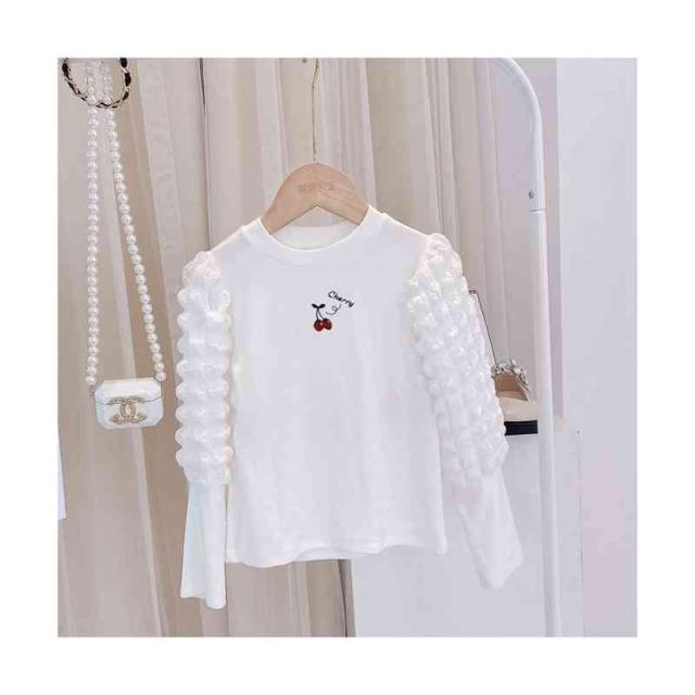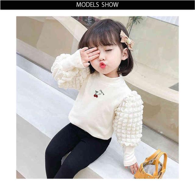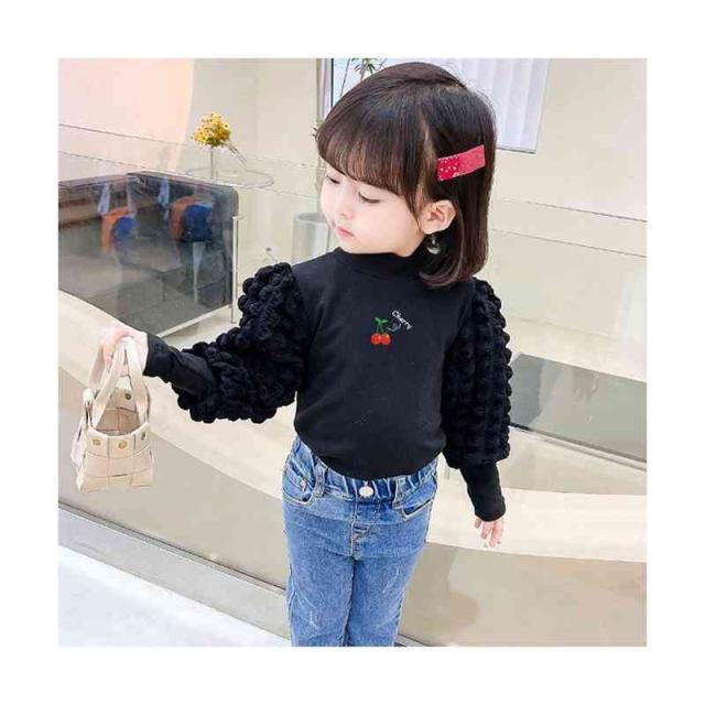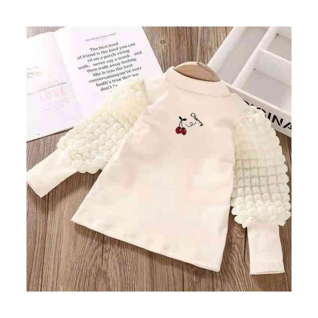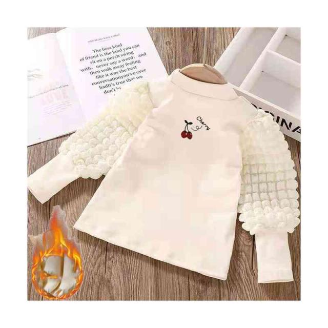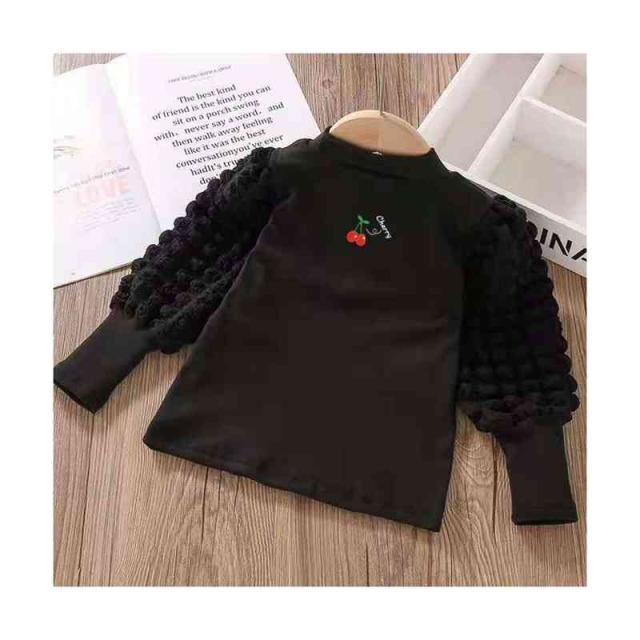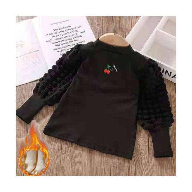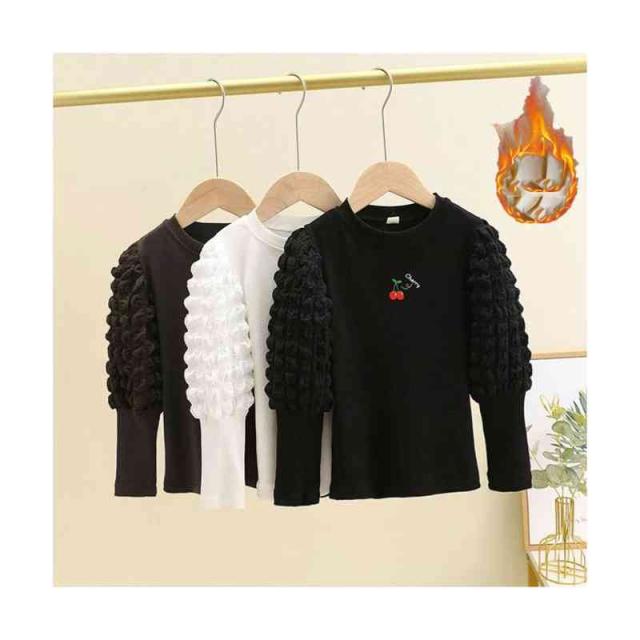 プリーツブラウス キッズ 女の子 桜桃柄 長袖 フリルブラウス おしゃれブラウス インナーブラウス トップス 春 秋冬 裏起毛ブラウス 無地 シンプル カジュアル おしゃれ 送料無料 子供服 ジュニア