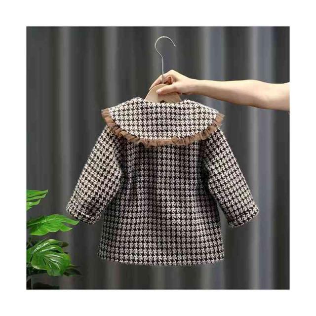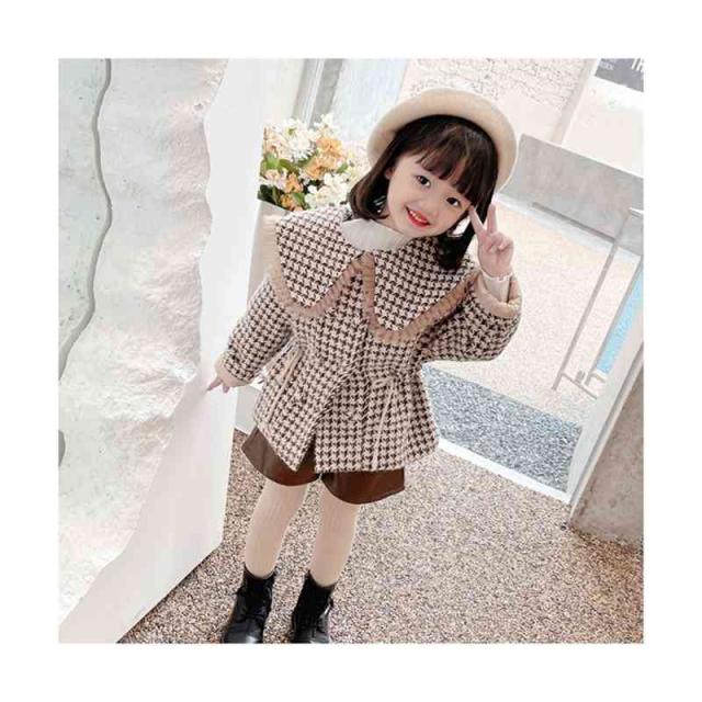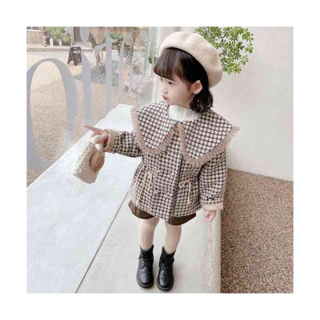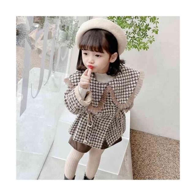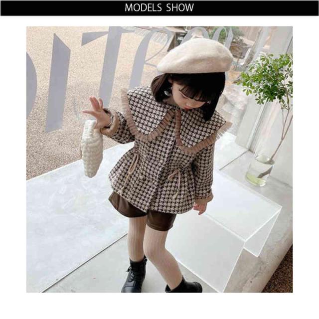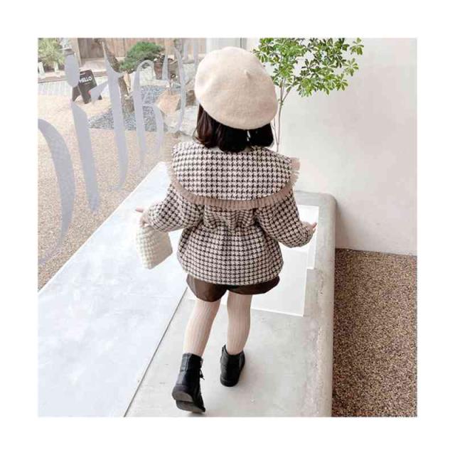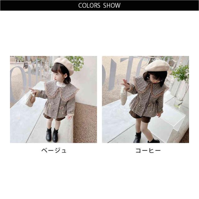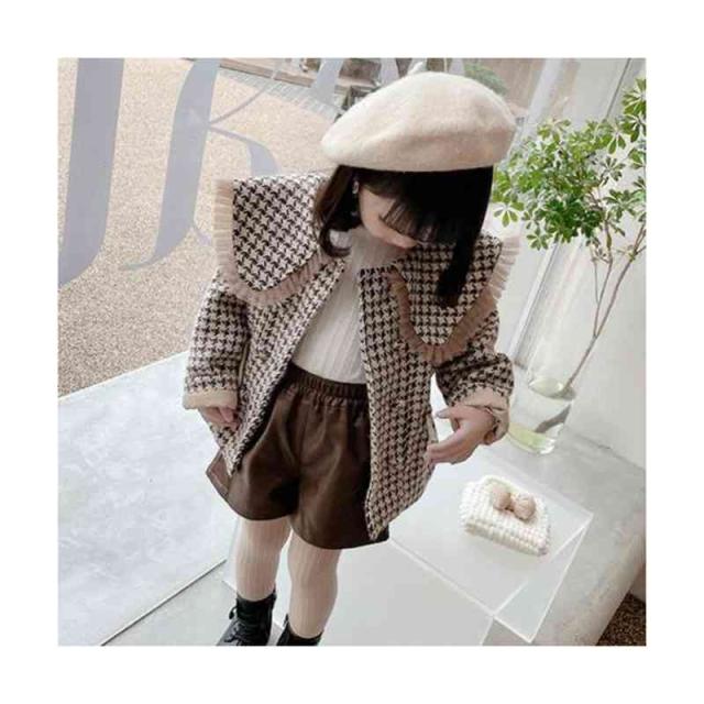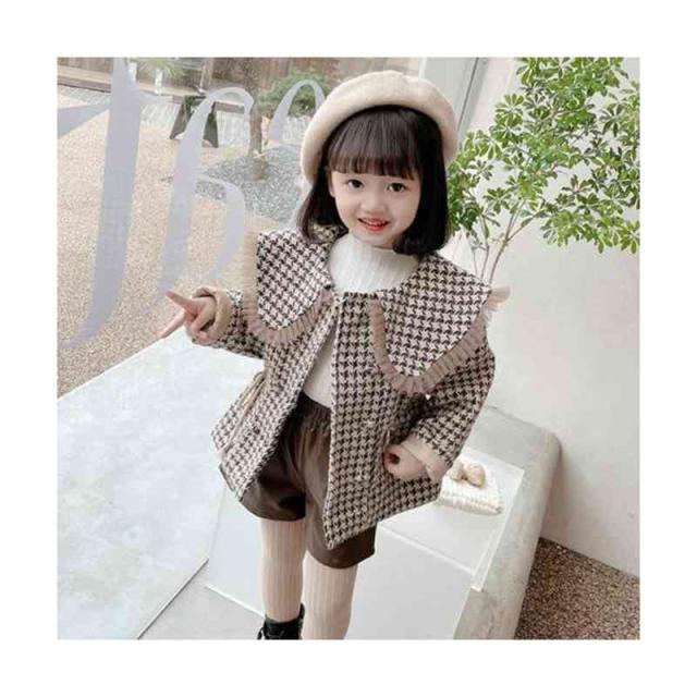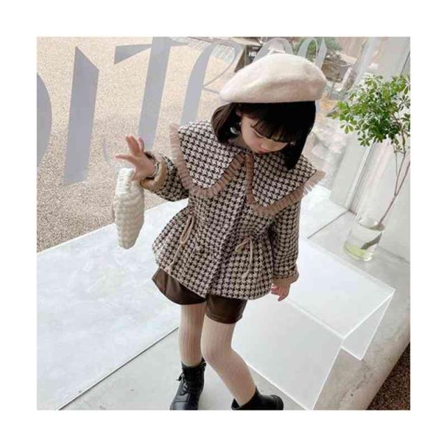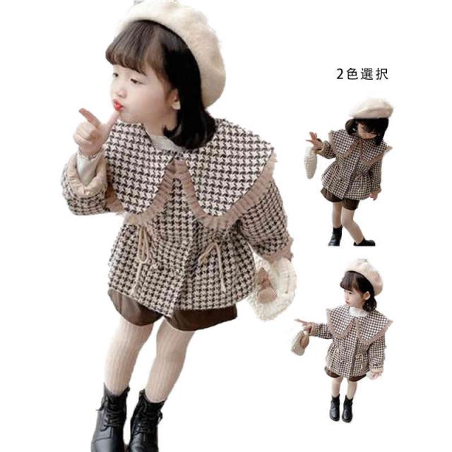 キッズ 子供 千島柄コート 秋冬 女の子 コート アウター キッズコート 防寒 子供服 ジュニア 女児コート フリルジャケット 長袖 可愛い おしゃれ 送料無料 シンプル カジュアル おしゃれ おでかけ 折襟 おしゃれ 普段着