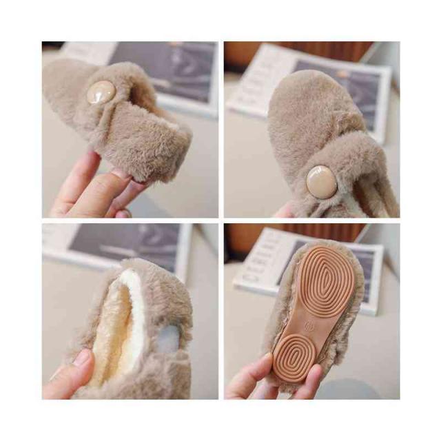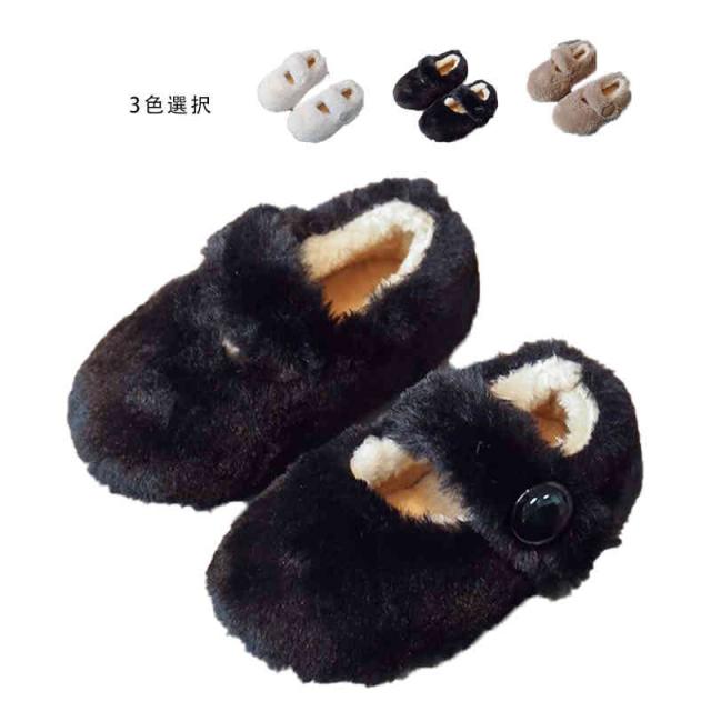 ファーシューズ キッズ 秋冬 シューズ ベルトシューズ 女児 シューズ 保温 防寒 ファー シューズ 子供靴 無地 シューズ カジュアルシューズ 女の子 ぺたんこ 可愛い フォーマル 送料無料 暖かい ルームシューズ