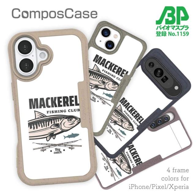 コンポスケース & 着せ替え デザインシート セット Google Pixel9a Pixel9 Pro XL Pixel8a Pixel8 Pro Xperia 10 V ケース 背面 生分解性 4色 釣り 魚 ルアー マカレル(サバ)