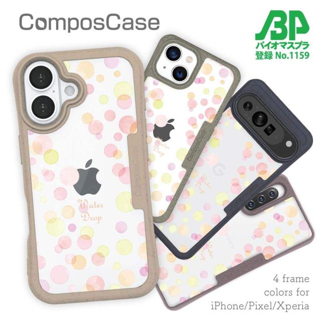 コンポスケース & 着せ替え デザインシート セット Google Pixel9a Pixel9 Pro XL Pixel8a Pixel8 Pro Xperia 10 V ケース 背面 生分解性 4色 水玉 ピンク