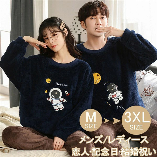 パジャマ ペア 冬 ルームウェア 上下セット もこもこ 長袖 部屋着 寝間着 メンズ レディース ペア パジャマ もこもこ フリース カップル ルームウェア 部屋着 裏起毛 長袖 冬向き 寝間着 かわいい 上下セット お揃い メンズ レディース プレゼント 結婚祝い