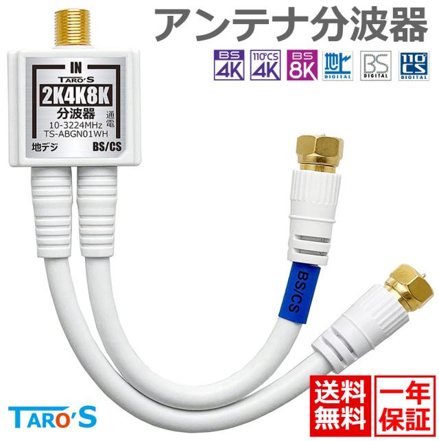 送料無料 テレビアンテナ分波器 ぶんぱき 2K 4K 8K BS CS 地デジ 衛星放送 ケーブルテレビ 対応 金メッキ 4C-FBケーブル 2本 一体型 15cm ホワイト 白 TS-ABGN01WH タローズ
