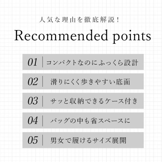 | 商品説明 | ・カバンすき間にサッと差し込める薄型携帯スリッパ、その名も「-com- 挿シこむ。」が新登場! ・一般的な携帯スリッパにありがちなペラペラ感を解消!中敷きにはしっかりと弾力のあるクッション入りで、秋冬時期の冷え込むフロアでも安心。 ・スリッパの底面には波型の溝を刻んだEVA樹脂素材を採用。フローリングや階段でも滑りにくく、ヒール部分のクッションで足裏にかかる負担も軽減。 ・アッパー部分を軽く折り込んで重ねれば、すっきりスリムな形状に変身。専用ポーチにしまってコンパクトに持ち運べるのが嬉しいポイント。 ・ビジネスバッグやトートバッグなど、普段使いのカバンの中のちょっとしたすき間に挿し込んで携帯できるサイズ感。 ・ご夫婦やカップル、ご家族でお揃いにできる、Mサイズ(22.5cm〜24.5cm)・Lサイズ(25.0cm〜26.5cm)・LLサイズ(27.0cm〜28.5cm)の3サイズ展開。 ・男性から女性までゆったりと履けるユニセックスデザイン。 |
