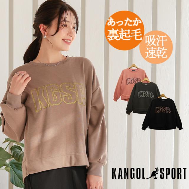 KANGOL カンゴール 裏起毛 トレーナー スウェット ブランド レディース 裏起毛トレーナー 裏ボア 裏シャギー トップス プルオーバー ロゴトレーナー 秋 冬 ショート丈 長袖 クルーネック あったか 防寒着 黒 ピンク 丸首 暖かい スエットトレーナ 大人可愛い スポーツブランド