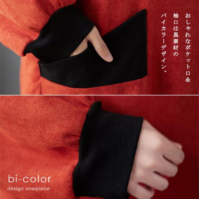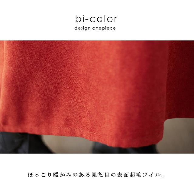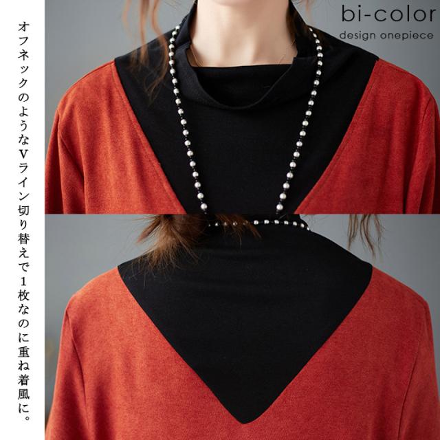 重ね着風オフタートルV切替ワンピース