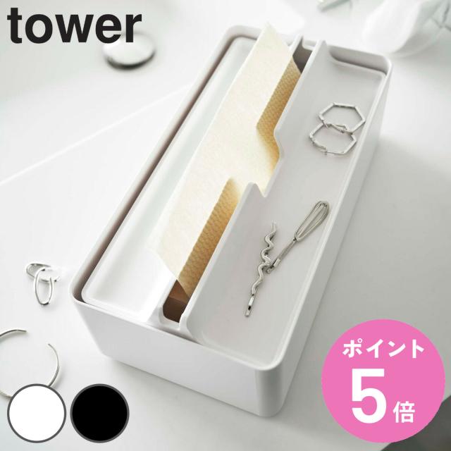 tower 山崎実業 トレー蓋付きペーパータオルケース タワー ( タワーシリーズ ティッシュケース ティッシュボックス ペーパータオルケース 卓上 置き型 ティッシュ ペーパータオル ケース )