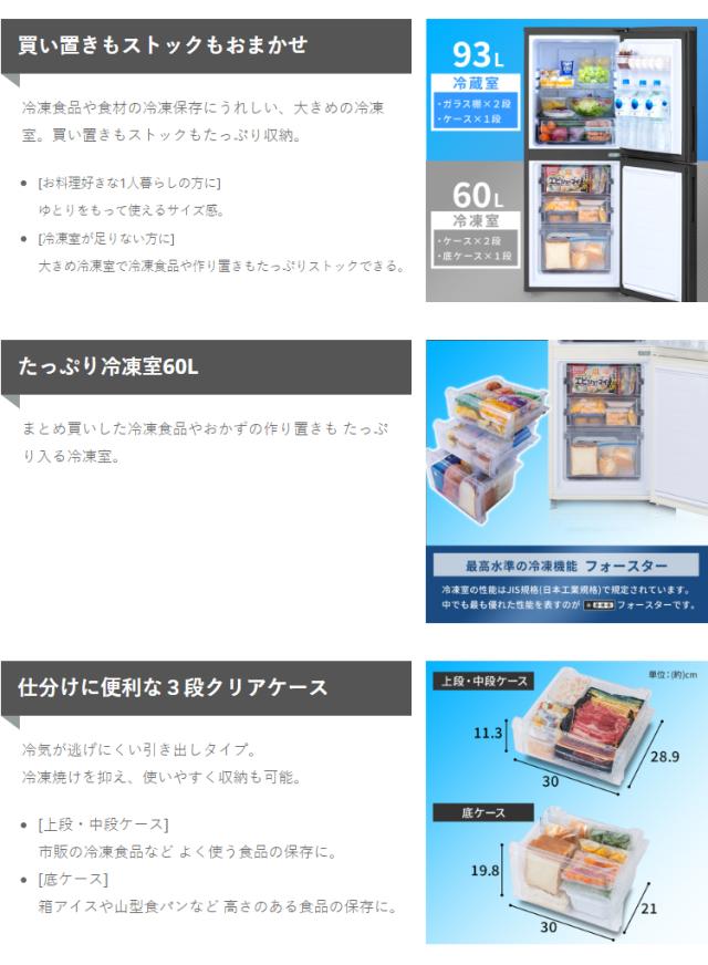 全定格内容積:153L(冷蔵室93/冷凍室60L)