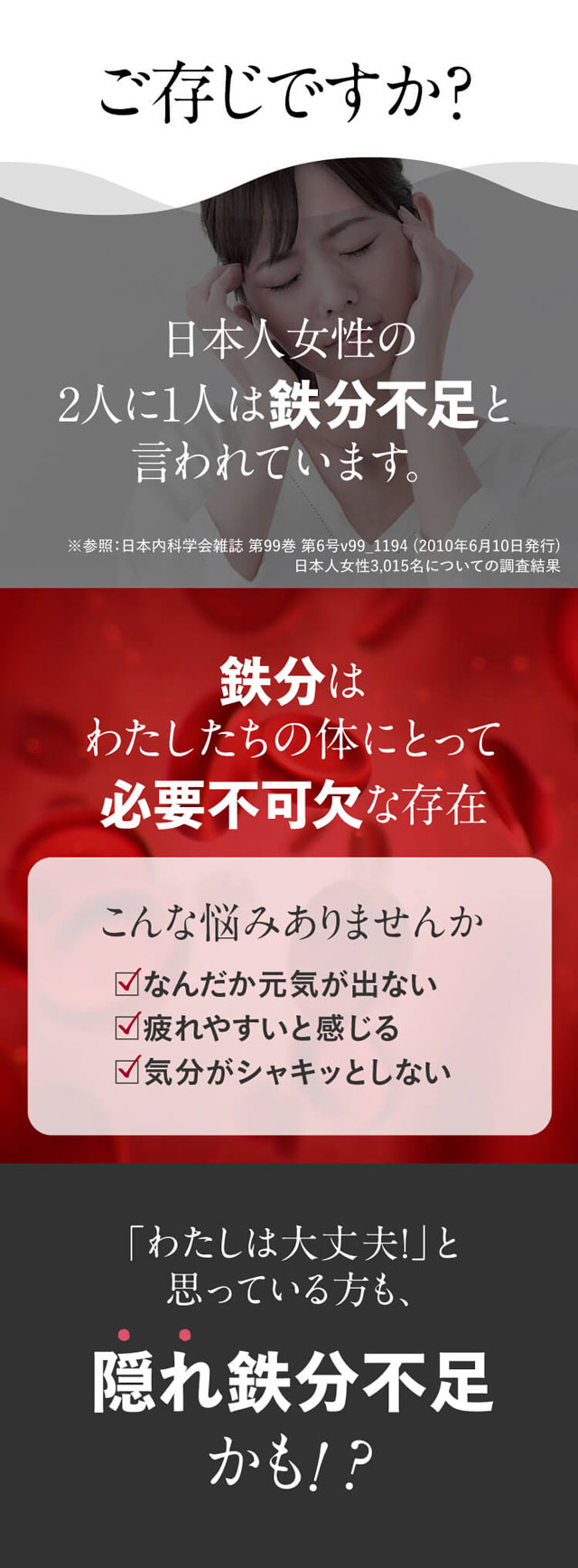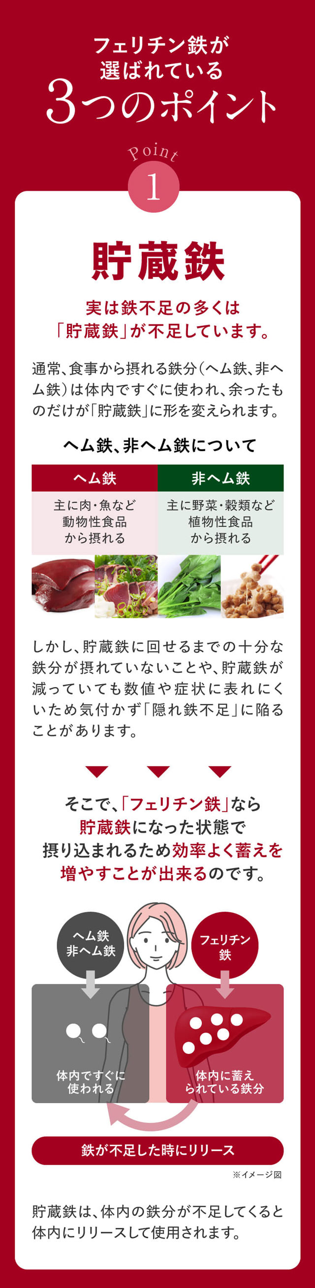鉄不足でお悩みの方に"貯蔵鉄"サプリ