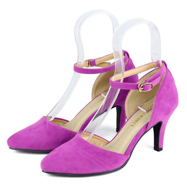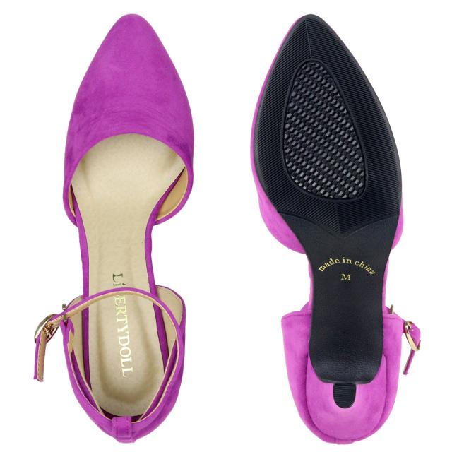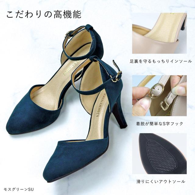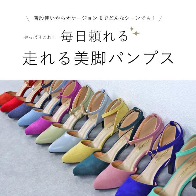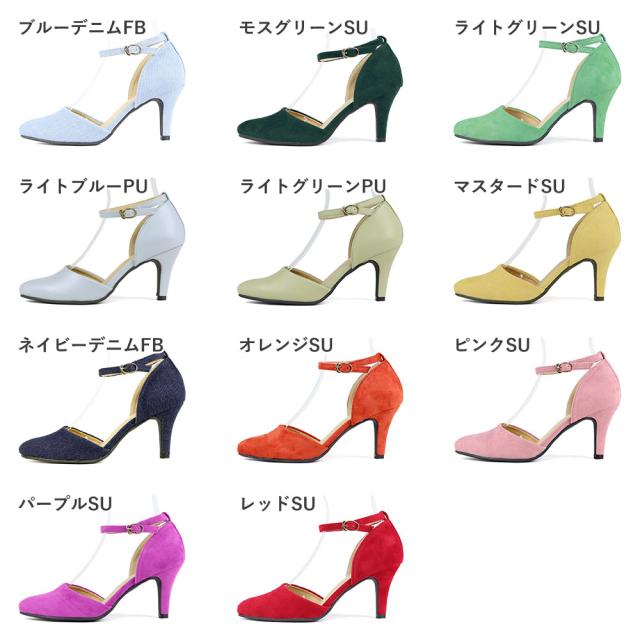 パンプス ストラップ 痛くない セパレート ハイヒール 8cm スエード 合成皮革 ブルー 赤 デニム カラー ポインテッドトゥ 通勤 脱げない 走れる 22.0~25.0cm LiBERTYDOLL リバティードール No.5430