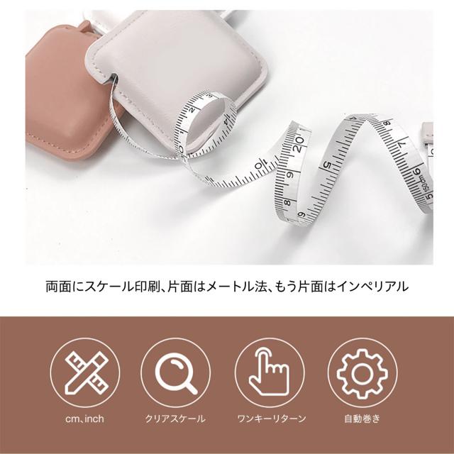 メジャー 巻尺 テープメジャー オートメジャー 150cm 6inch革小物 手芸 裁縫 PUレザー コンパクト 携帯 かわいい プレゼント t-measure