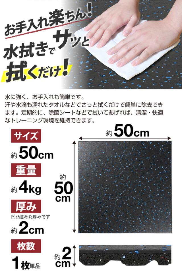 ジムマット 50x50x2.0cm | ゴムマット 2cm 20mm 防音 防滑 エクササイズ フィットネス ダンベル おすすめ 筋トレ 衝撃吸収 ゴム ラバーマット 厚い 硬い