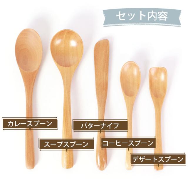 スプーン カトラリー 天然木製カトラリー 5本 セット 送料無料 お得なセット おしゃれ 北欧 ウッド ナチュラル 可愛い かわいい 白木 ウレタン塗装 福袋 カレースプーン スープスプーン コーヒースプーン デザートスプーン バターナイフ