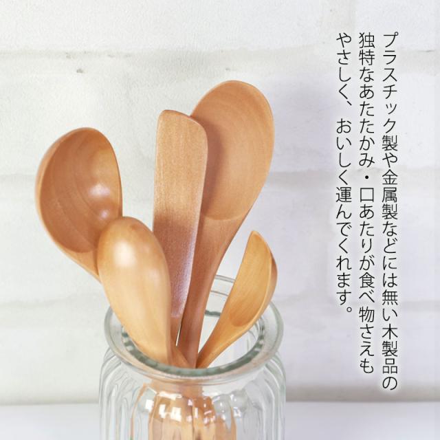 木のカトラリーは金属の擦れる嫌な音や、金属味がないので食事が一層美味しくなります。一度、木のスプーンを使うと、その口当たりの優しさの虜になります。