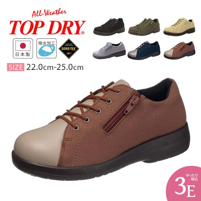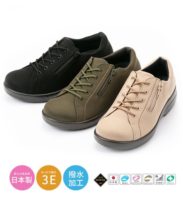 レインシューズ レディース 通勤 スニーカー レディース 防水 防滑 サイドファスナー 履きやすい 幅広 3E 撥水加工 晴雨兼用 カジュアルシューズ 旅行 ゴアテックス トップドライ 黒 ブラック カーキ グリーン 緑 ベージュ TDY3990