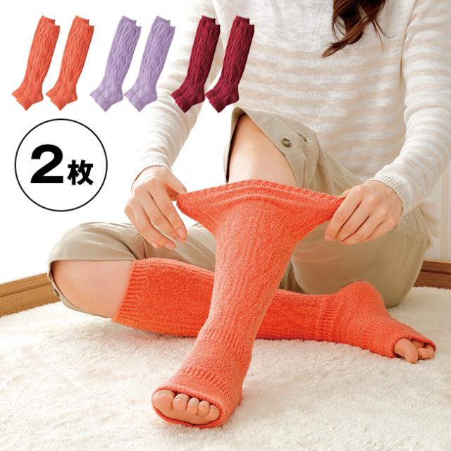 夜用快眠ウォーマー《同色2枚》(レッグウォーマー レディース 冬用 つま先なし 締め付けない ゆったり 裏起毛 暖かい 足 冷え かかと かかと付き 日本製 ルームソックス もこもこ モコモコ 冬 防寒 睡眠 寝るとき 寝る時 靴下 ソックス 脚) 即納