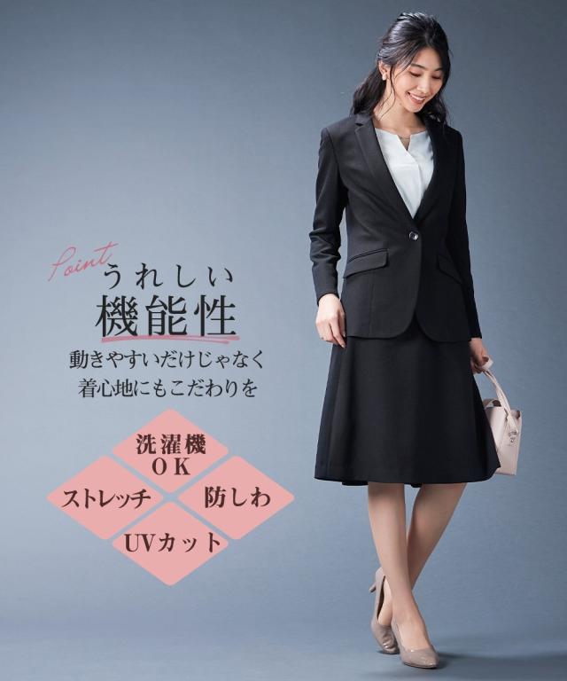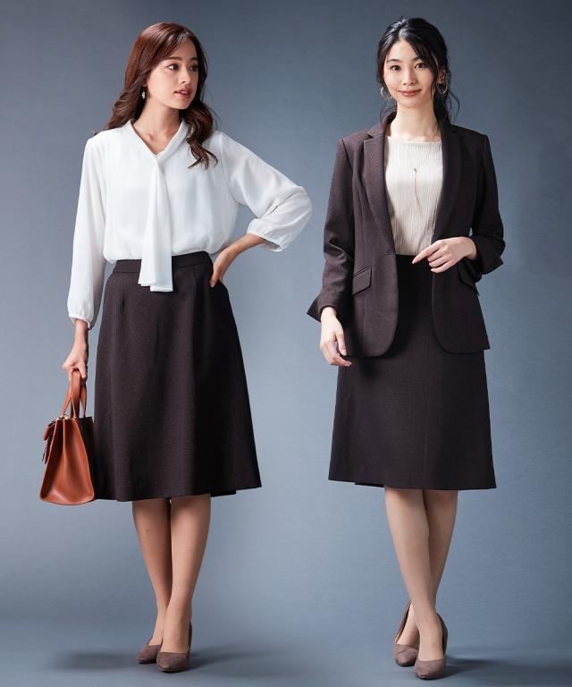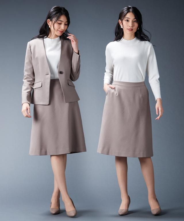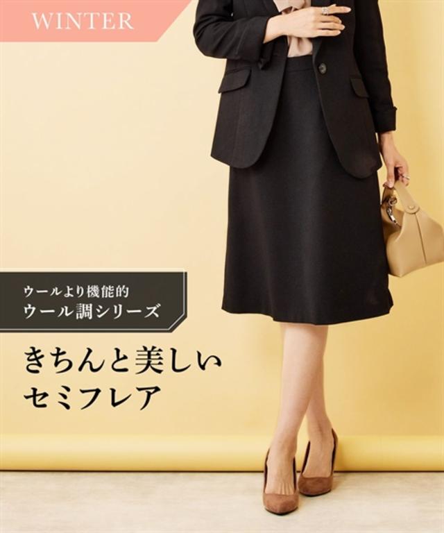 【レディーススーツ】セットアップ対応洗えるウール調セミフレアスカート(上下別売)